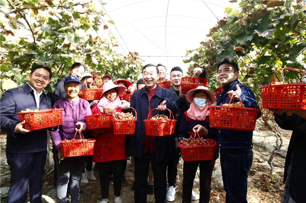 隨后小分隊來到敦厚村的葡萄種植大棚,豐收果實、高掛枝頭,志愿者與種植農戶一起采摘葡萄,共話鄉(xiāng)村振興、扶貧攻堅、增產增收,葡萄大棚中滿是喜悅的笑聲。